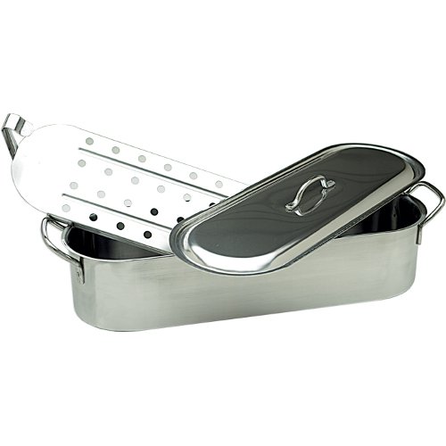 Poach fish into delicious fish steaks or fillets with this fish poacher. Fabricated from thick stainless steel, it is sturdy and reliable. Excellent for all of your poaching needs, the long and narrow body of the fish poacher provides for the whole fish, fish steaks or fillets. A sturdy perforated pull out rack is great even for delicate fish. This essential poacher cooks gently so the fish becomes tender and flavorful.