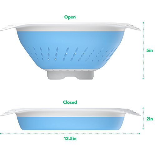 DURABLE SILICONE COLANDER – Made of heavy duty BPA free silicone that can resist heat up to 175°F for you to quickly blanch your veggies in hot water. It’s designed with a sturdy base which provides stable balance while rested on countertops or sink