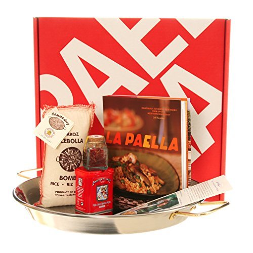 Includes an authentic spanish stainless steel paella pan, rice, saffron, smoked paprika, and paella cookbook.