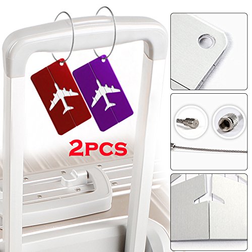 Aluminum Luggage Tags Holders with Stainless Steel String Wire(Purple)