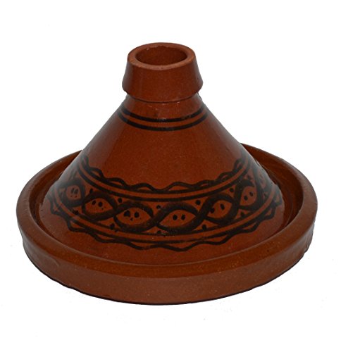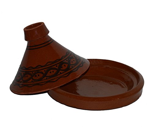 Simple and functional, this authentic, handcrafted Moroccan cooking Tagine is ready to be used for your next flavorful and exotic Moroccan meal.The Tagine is to be use on the top of electrical or glass stove or inside the stove. If you have a gas stove with flames please use a protective metal piece to protect your Tagine from cracking. HOW TO CURE A TAGINE? It is necessary that it is seasoned before initial use. Please follow these simple instructions below for maximum results: 1. WATER: The new tagine needs to be first submerged in water for at least 1 hour. If you can’t submerge it, place it in a clean sink bowl and slowly fill the base of the tagine with water until it stops absorbing it. Place the tagine lid on top and fill it as well. Let stand for 30 minutes to allow full absorption of water into the clay. Empty excess water and set to dry for 5 minutes. 2. OLIVE OIL: All you need is 3 table spoons of olive oil, 2 for the base and one for the lid. Spread the olive oil throughout the base and lid with your hand. 3: HEAT: While the tagine is still wet with the oil applied to it, place it in the oven as shown in the first or second photos, and set temperature at 350 F and leave for 45 minutes. The evaporation of moisture creates a vacuum effect to pull the olive oil into the clay which glazes and seals it. Then leave the tagine cool down in the turned off oven.B0060NOOTO