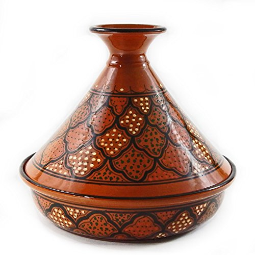 12″ cookable clay tagine is ideal for slow cooking at low temperatures on the stovetop (gas or electric). Cooking in clay greatly enhances the flavor and preserves more of the nutritional value of cooked foods. We enclose seasoning instructions and some recipes with each tagine. We recommend using a diffuser.