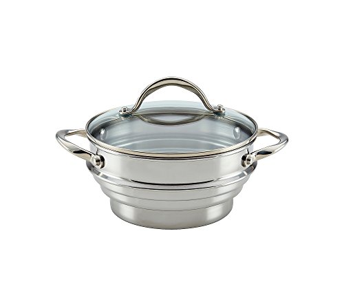 Steam vegetables, dumplings and more like a pro with the Anolon Classic stainless steel covered steamer insert. The shatter-resistant glass lid allows you to monitor your cooking every step of the way. A universal fit for two, three and four-quart cookware, this steamer is ideal for a wide variety of foods from shrimp and scallop shumai to broccoli florets and baby carrots to pork and chicken pot stickers.