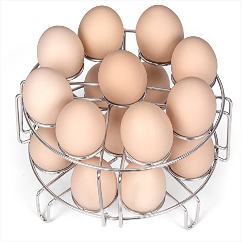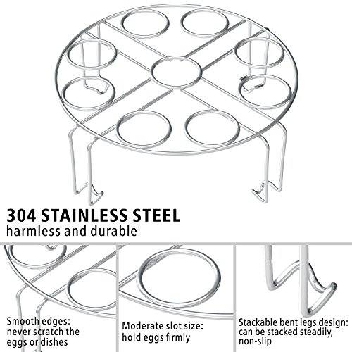 ★Why to choose us:— Maximum capacity for 18 Eggs:Each steamer rack can hold up to 9 eggs; two stackable rack can cook 18 eggs at the same time, very easy to keep eggs stay put in your instant pot, pressure cooker and other pots— Multifunction Use:The steamer rack also can be used as steam rack, cooling rack, pot stand rack, etc. raising plate and pan— Steam Various Foods:Steaming vegetables & fruits, meats & chicken, seafood & fish and so on— Safety quality material:Made of Food-grade 304 stainless steel, sturdy and durable; completely meet each family’s basic needs
