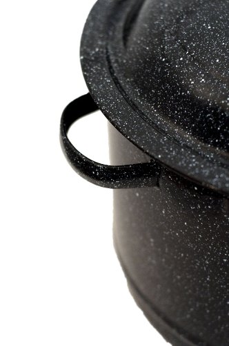 Whether it’s steaming seafood, lobster boil or a shore dinner, Granite Ware specialty seafood pots are unique, multi-functional and perfect for the job. Made in the USA, this 19-Quart Decorated Lobster Pot has a large capacity and is made out of carbon steel with a porcelain surface. Porcelain is fused to the steel at 2,000 degrees Fahrenheit producing a non-porous, inert glass surface that is naturally non-stick. Porcelain can chip if dropped, however this does not reduce the effectiveness of the cookware. It creates a smooth, hard finish that won’t burn and resists staining. It’s also non -porous so it won’t trap odors or food particles and provides a low coefficient of friction – meaning that it cleans up easily and, it is corrosion and chemically resistant so it will last a long time. When fired, the vessel is placed on pins so the bottom and sides are hardened during the firing process into one smooth laminated glass surface. You may notice slight pin indentations where the glass has flowed around the pin that supports the base during firing. The pin marks do not compromise the finish or performance of the vessel. Not recommended for glass cooktops.