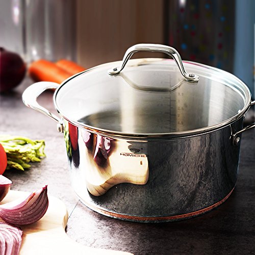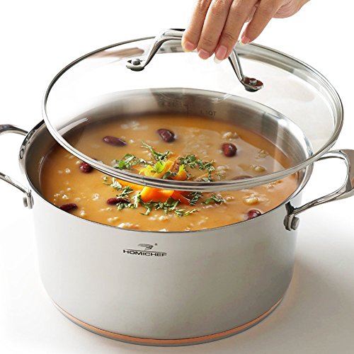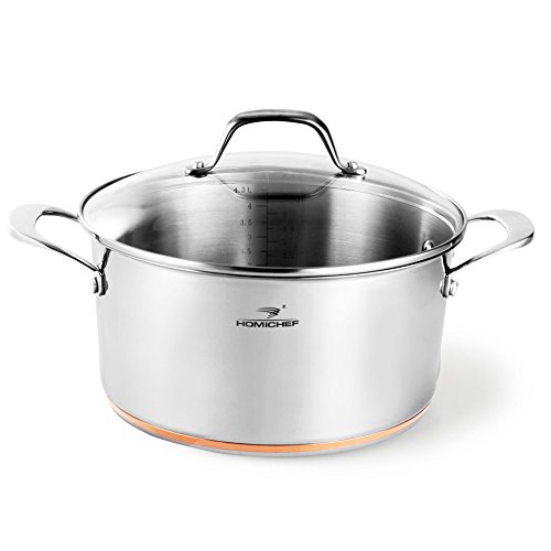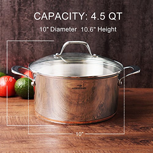 HOMI CHEF Mirror Polished Copper Band NICKEL FREE Stainless Steel 4.5 Quart Stock Pot with Glass Lid (No Toxic Non Stick…