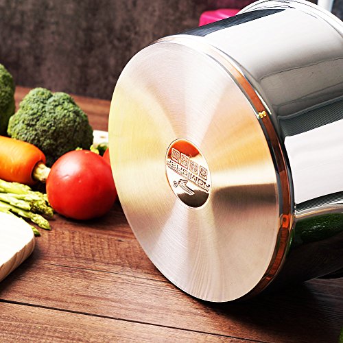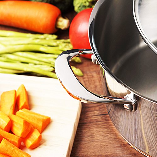 NO NON-STICK COATING NO RISK – General non-stick coating cookware releases toxic fumes when cooking; is known to cause cancer and disrupt immune system. As it becomes worn, the risk of ingesting Teflon increases drastically. Our stainless steel stock pot does not apply any coating, and is free of health hazard. 3-Ply construction & heat surround features allow for even heat conductivity and distribution to eliminate hot spots; thus achieve natural stick resistance without toxic PFOA and PTFE.