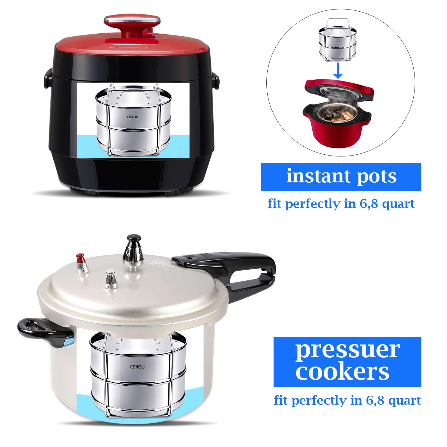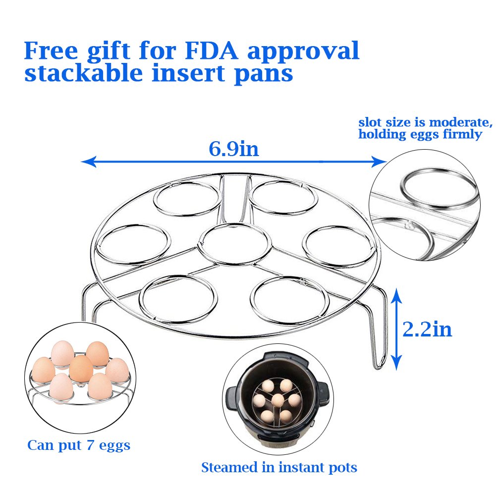 EASY TO USE & SAVE YOUR TIME: Cook varieties of foods simultaneously by 2-layer stackable pans. The Instant Pot accessories can help us cook 3 dishes at the same time. The Steamer Basket great for steaming rice, vegetables, meat, fish, make cheesecakes or make lasagna.