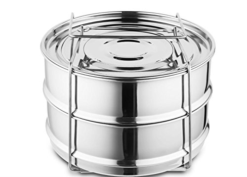 FOOD GRADE STAINLESS STEEL: The stackable steamer insert set is built with durable high-quality food-grade stainless steel to ensure your health and quality is not compromised in the least. One of the best quality steel pans used with Instant Pot.