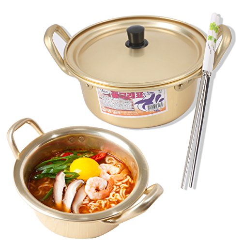 Korean Ramen Noodle Pot 6.3″(16cm) + Chopstick (1 Pair) + Dish scrubber, Made in Korea (Standard version)