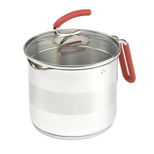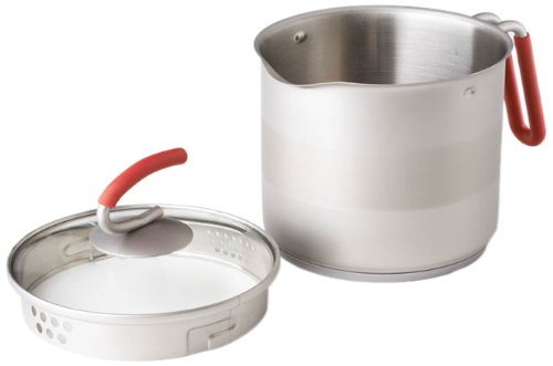 The 4th Burner Pot from Kuhn Rikon is perfect for a crowed stovetop. Made tall and thin, the stainless steel pot is a versatile superstar; includes a steamer basket, silicone-covered handle on both pot and steamer basket, pouring spout on pot and a glass top with holes for easy straining. Turn lid to close spout to keep liquid inside while cooking. Interior fill marks for easy measuring. Perfect for asparagus, vegetables, soups and many other dishes. 3.0-quart capacity. Dishwasher safe.