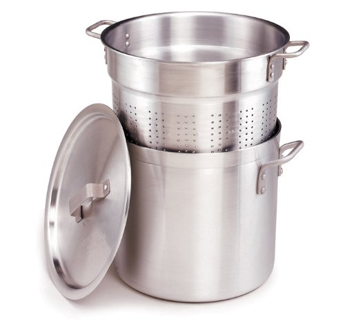 This 3-piece steamer / pasta cooker set (insert, lid & pot) is professional-quality cookware. The pot is made of heavy-gauge aluminum, an energy-efficient material with excellent thermal conductivity. Dent resistant with extra-heavy-duty handles. NSF listed.