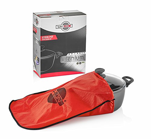 Command the kitchen with a nonstick stock pot that is almost three times more durable than the competition. The Saflon Nonstick Titanium Stock Pot is made in Turkey with the highest quality titanium coating sourced from Withford England that utilizes the latest technology. Enjoy reliable, even heating with a nonstick stock pot that heats up faster and is built to last.