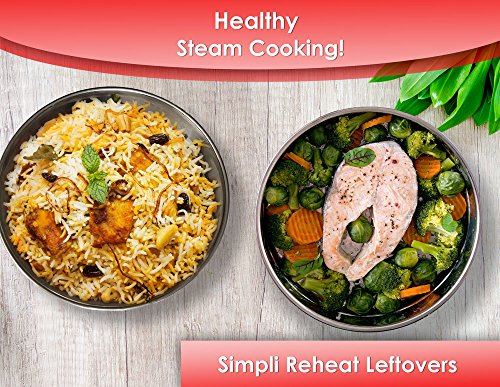 Make fresh, healthy rice, meat, fish, vegetables, and more with stackable steamer insert pans from Simpli Instant by clicking ‘Add to Cart’ above.