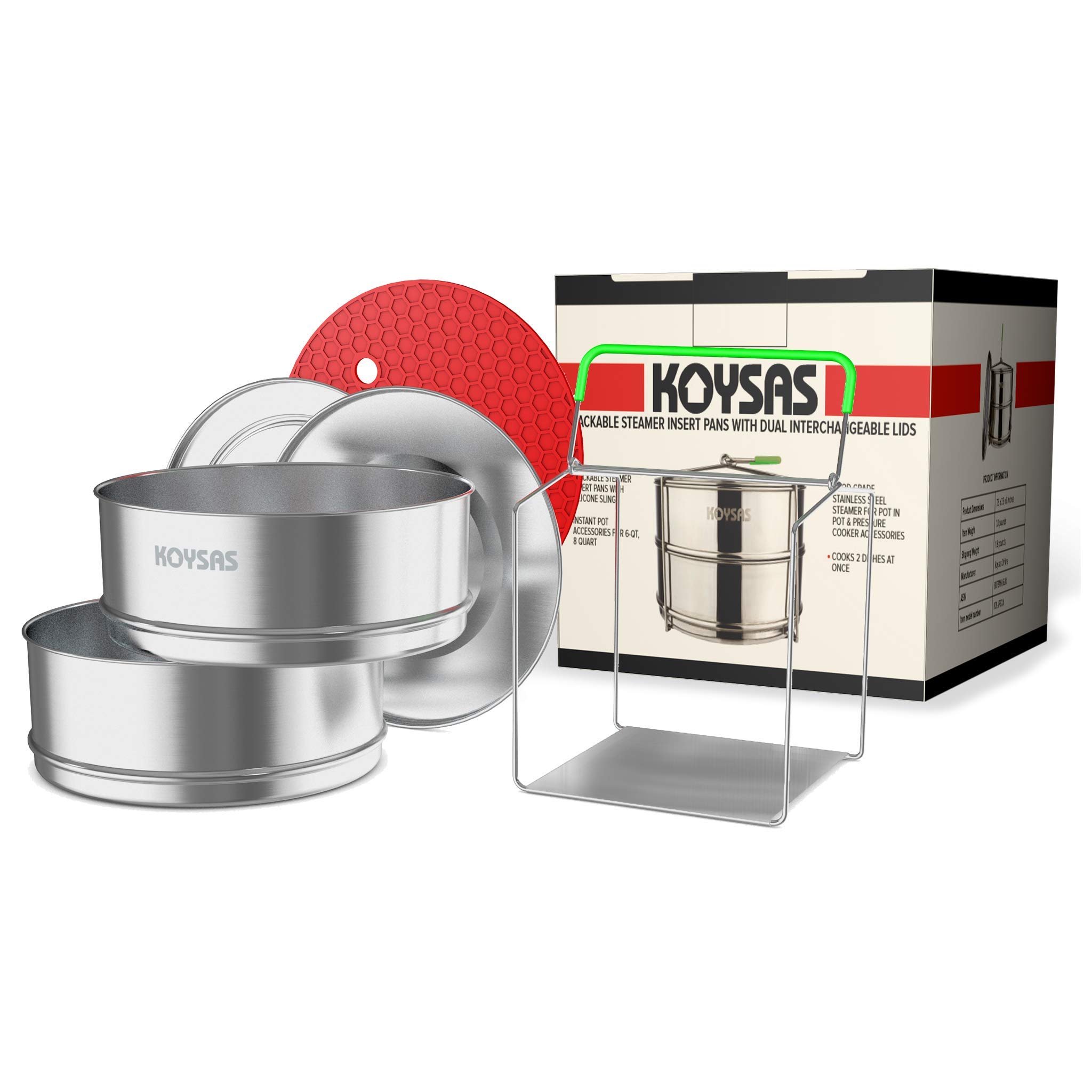 KOYSAS Stackable Steamer Insert Pans Compatible with Instant Pot – Safety Handle Sling – 6, 8 Qt – Stainless Steel Food…