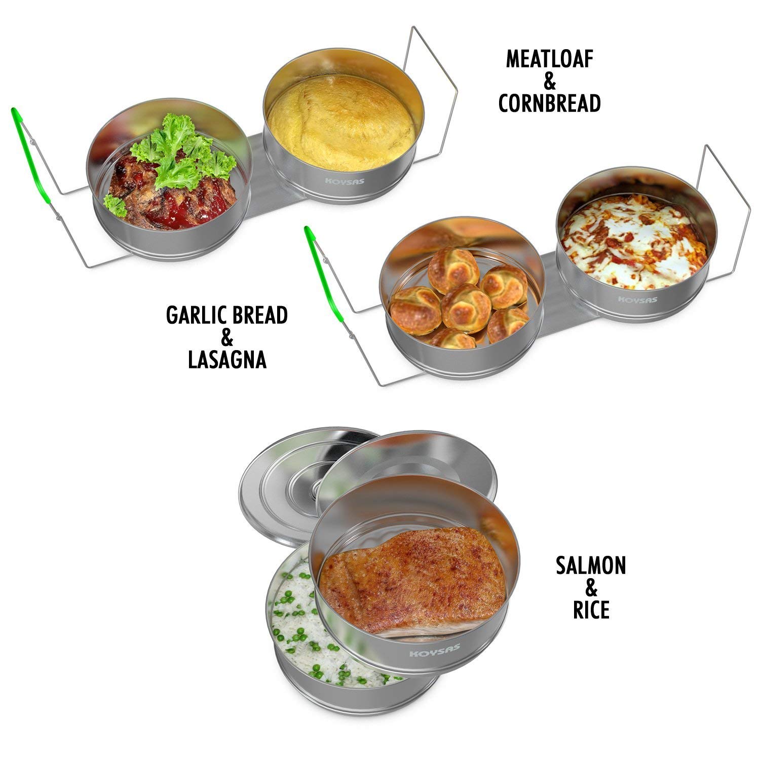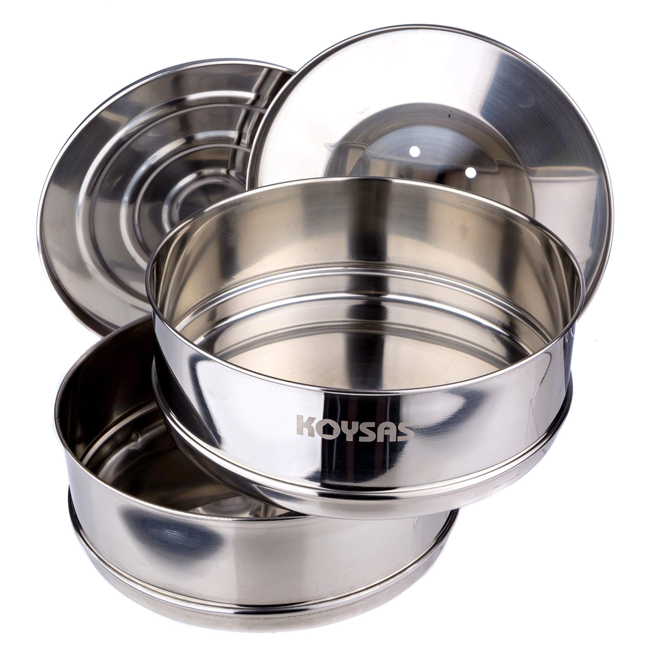 🥘 STACKABLE STEAMER PANS – KOYSAS stacking steamer pans create healthier meals and foods. Easily prepare meats, vegetables, fish, pasta, noodles, rice, casseroles, lasagna, cakes and more. Cooks two dishes at the same time.