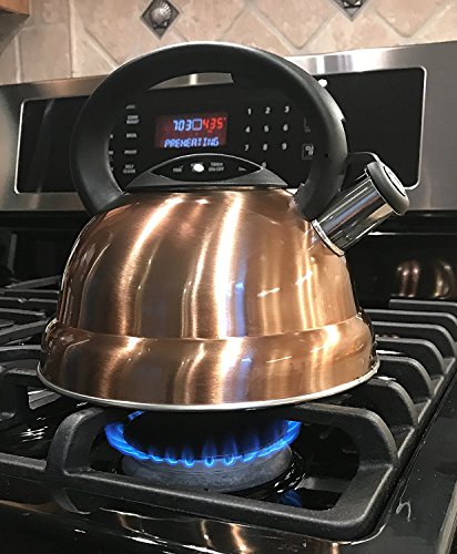 The outside of this well constructed kettle is finished with a beautiful copper finish for an elegant touch to your kitchen.