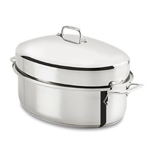 All-Clad E7879664 Stainless Steel Dishwasher Safe Oven Safe Covered Oval Roaster Cookware, 20-lbs, Silver