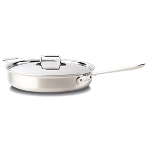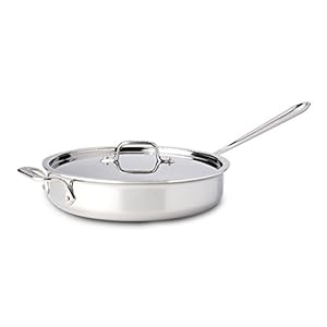 All-Clad BD55404 D5 Brushed 18/10 Stainless Steel 5-Ply Dishwasher Safe Week Night Pan Cookware, 4-Quart, Silver –