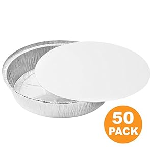 [50 Pack] Round 8 Inch 37 oz, 2.3 lb, 1.1 Quart Disposable Aluminum Foil Pan Take Out Food Containers with Flat Board…