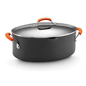 Rachael Ray Hard Anodized Nonstick 8-Quart Oval Pasta Pot with Glass Lid, Orange