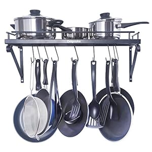 ZESPROKA FBA_JW-SL5E-AJVR Kitchen Wall Pot Pan Rack,With 10 Hooks,Black