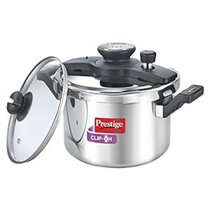 Prestige Clip-On Stainless Steel Pressure Cooker, Cook and Serve Pot with Extra Glass Lid, Large 5 Liters