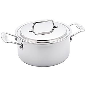 USA Pan Cookware 5-Ply Stainless Steel 3 Quart Stock Pot with Cover, Oven and Dishwasher Safe, Made in the USA, Silver