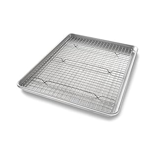 USA Pan Bakeware Quarter Sheet Baking Pan and Bakeable Nonstick Cooling Rack Set, Metal