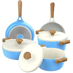 Vremi 8 Piece Ceramic Nonstick Cookware Set – Induction Stovetop Compatible Dishwasher Safe Non Stick Pots with Lids and…