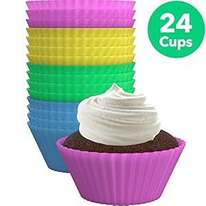 Vremi Silicone Molds Cupcake Baking Cups 24 Pack – Multi Color Reusable Muffin Cup Liners – BPA Free Rainbow Cupcake…