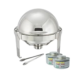 Winware 6 Quart Stainless Steel Round Roll Top Chafer, Chafing Dish Set with 2 Chafing Dish Fuel and 16-Inch Stainless…