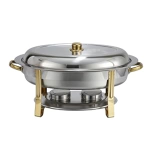 Winware 6 Quart Oval Stainless Steel Gold Accented Chafer