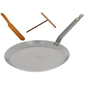De Buyer 5615.24 Mineral B Element Crepe Pan 9.5-Inch/24 cm (FREE BONUS: Spreader + Turner)