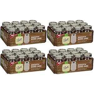 Ball Regular Mouth Smooth Sided Pint 16 Oz. Glass Mason Jars with Lids and Bands, 12 Count (4 Pack)
