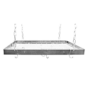 Rogar Hammered Steel Rectangular Pot Rack with Grid and Chrome Accessories 30-in.