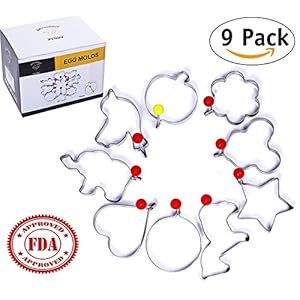 9 PCS Fried Egg Mold Stainless Steel Pancake Cookie Maker for Kids – Heart mickey bird apple elephant horse flower ring…
